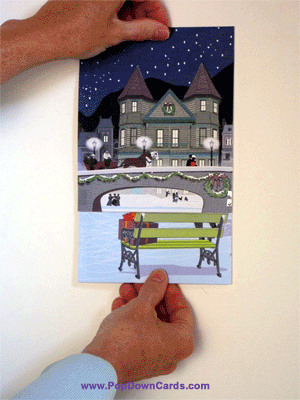 A magical, star-filled sky looks down on ice skaters enjoying the crisp winter air.